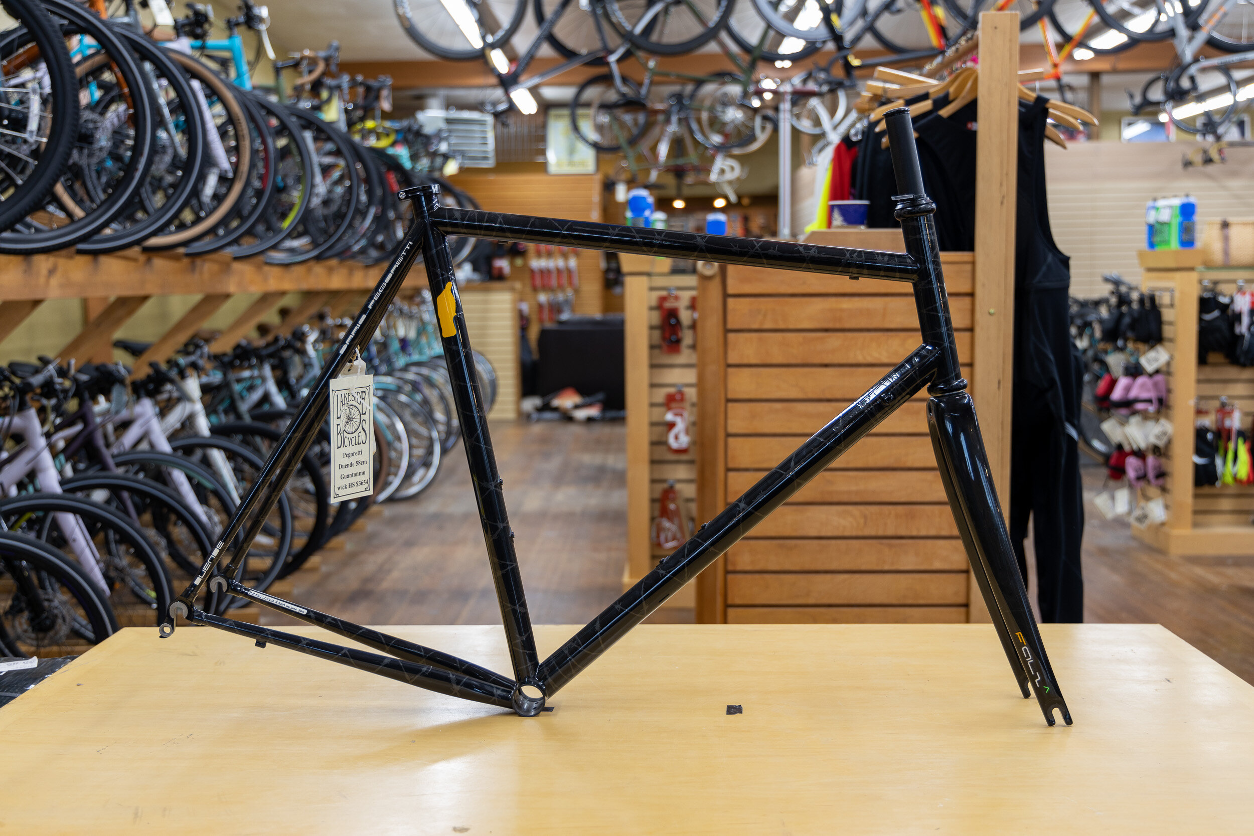 Browse the Lakeside Bicycles collection of Dario Pegoretti frames, all of which are ready to view in store. We carry a curated selection of models from this boutique Italian brand, and regularly update this page to reflect current availability. Should we not have your size in stock, we can source your dream frame in standard sizing, or even begin the custom size frame and paint finish process.